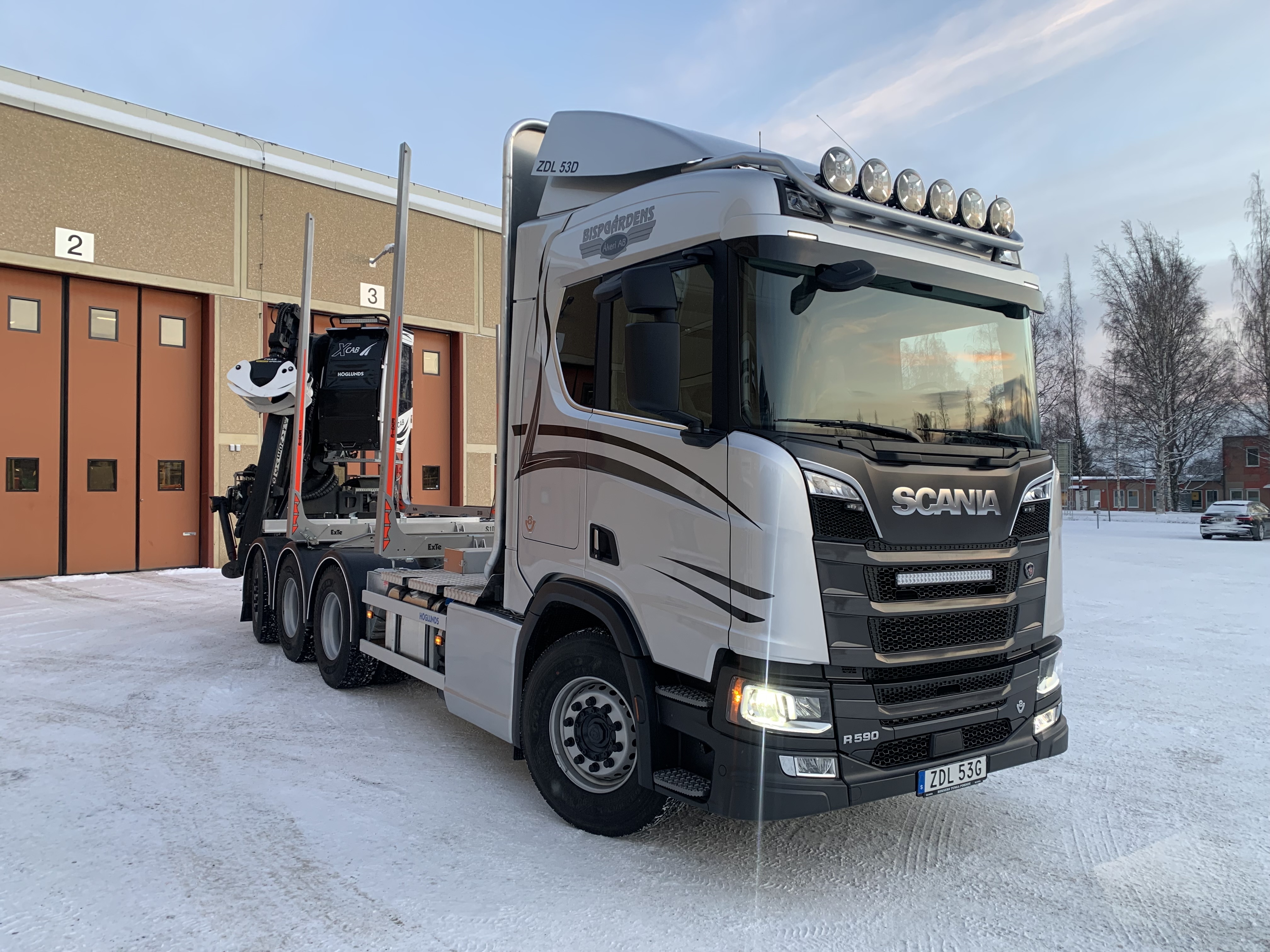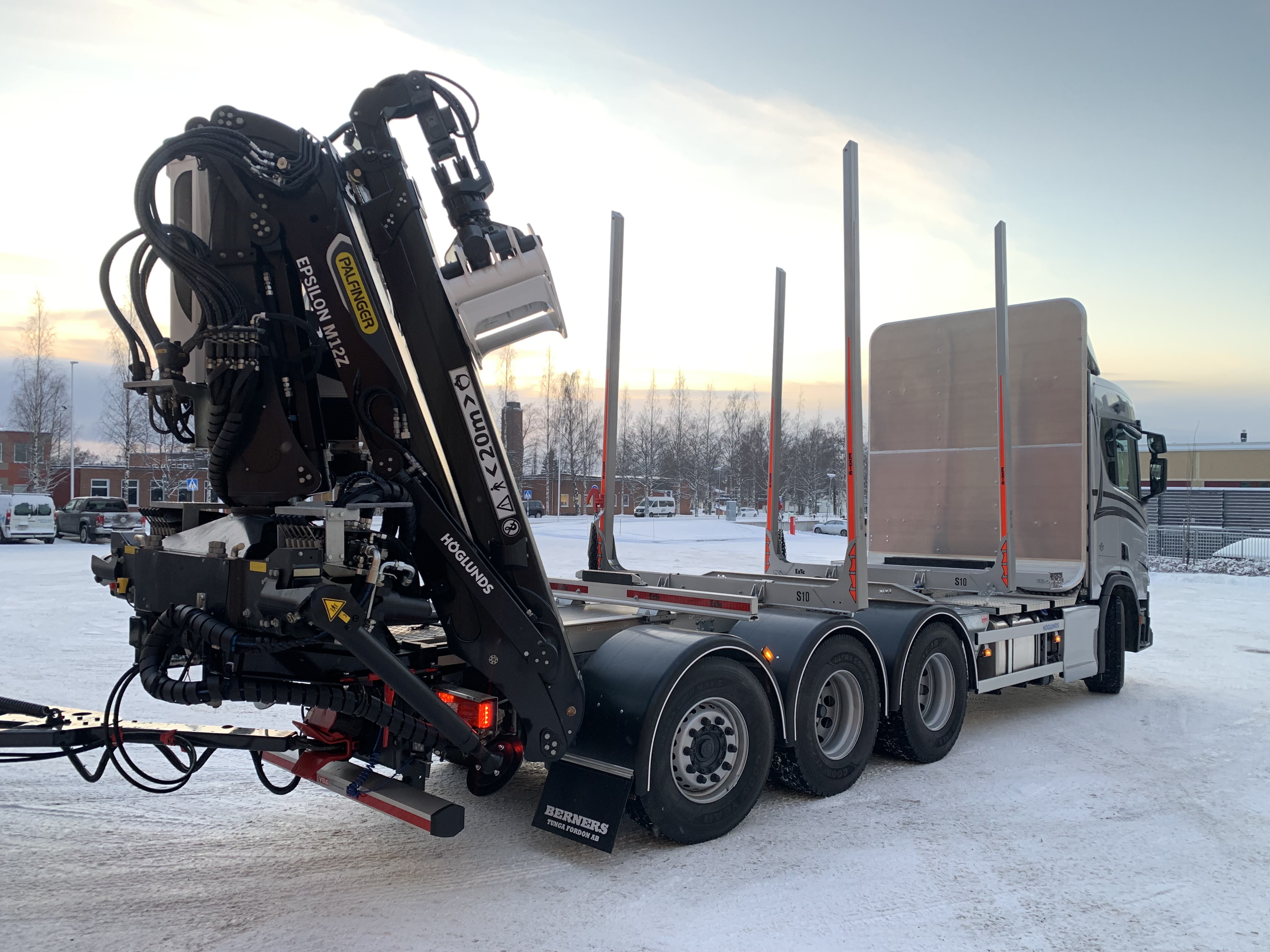 Efterlängtad levereras av detta ekipage till Bispgårdens Åkeri. De valde en R590 8x4*4 med Epsilon M12 Z-kran, påbyggantionen och kranen levererades av OP Höglunds. Vagnen är en kändis från Elmiamässan tidigare i år, en 5-axlig Kilafors Karlavagn utrustad med bla. S10i bankar och aluminiumfälgar. Vi på Berners tackar Tom för fortsatt förtroende och önskar chauffören David stort lycka till med sitt nya fina åk. Kör försiktigt.