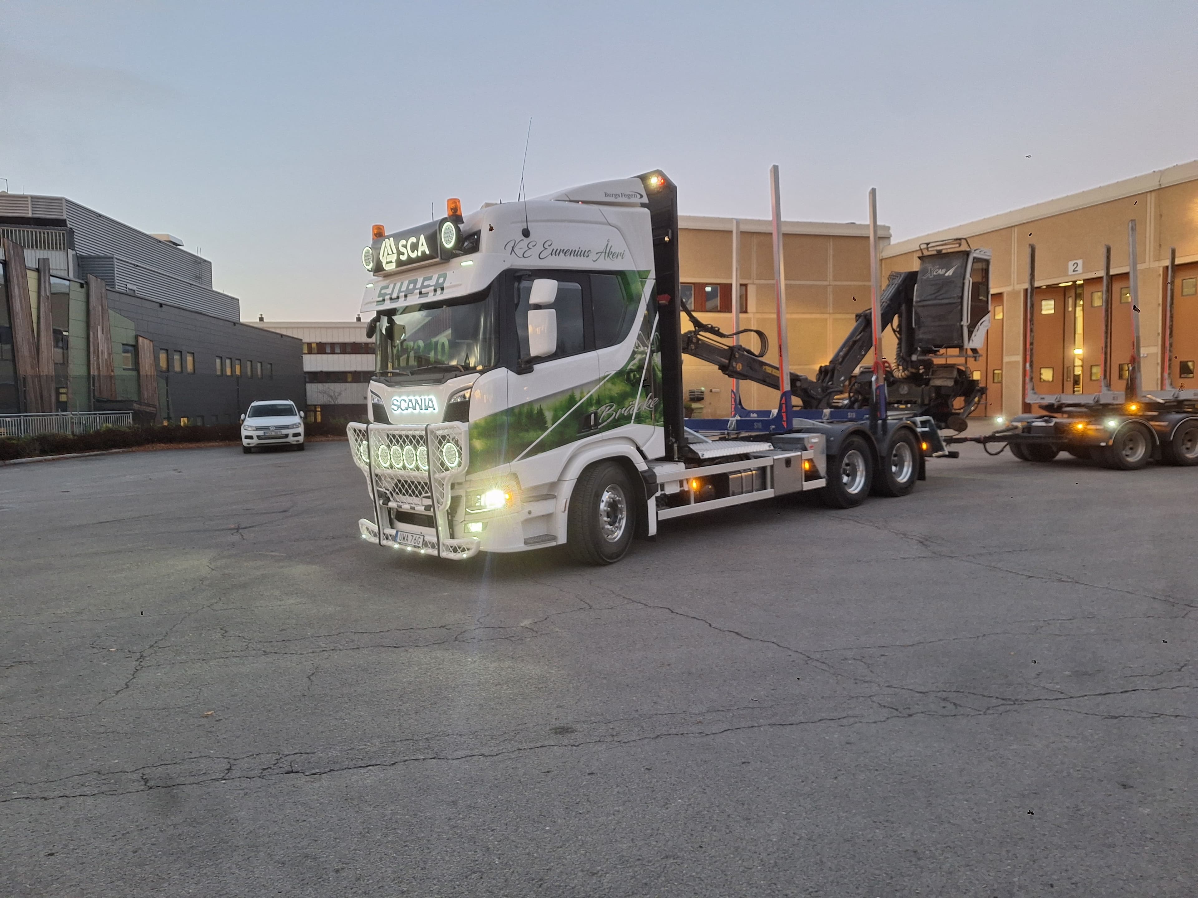 K-E Eurenius Åkeri AB har investerat i en ny bil, Valet föll på en Scania R590 6X4. Bergsfegen AB gjorde påbyggnationen och vi på Berners Tunga fordon AB byggde på belysning och andra tillbehör. Swetown AB såg till dekoren kom på plats. Vi tackar Håkan för fortsatt förtroende och kör försiktigt med nya bilen.