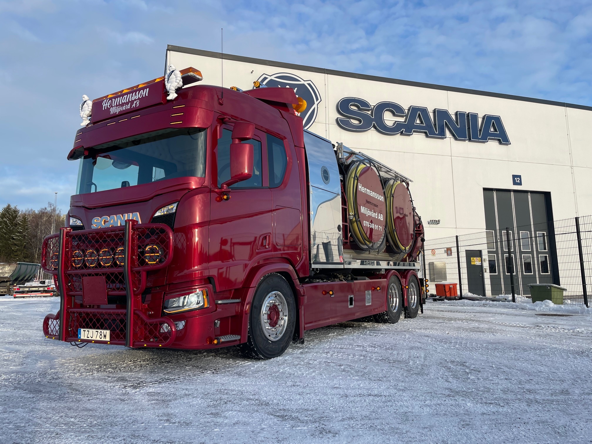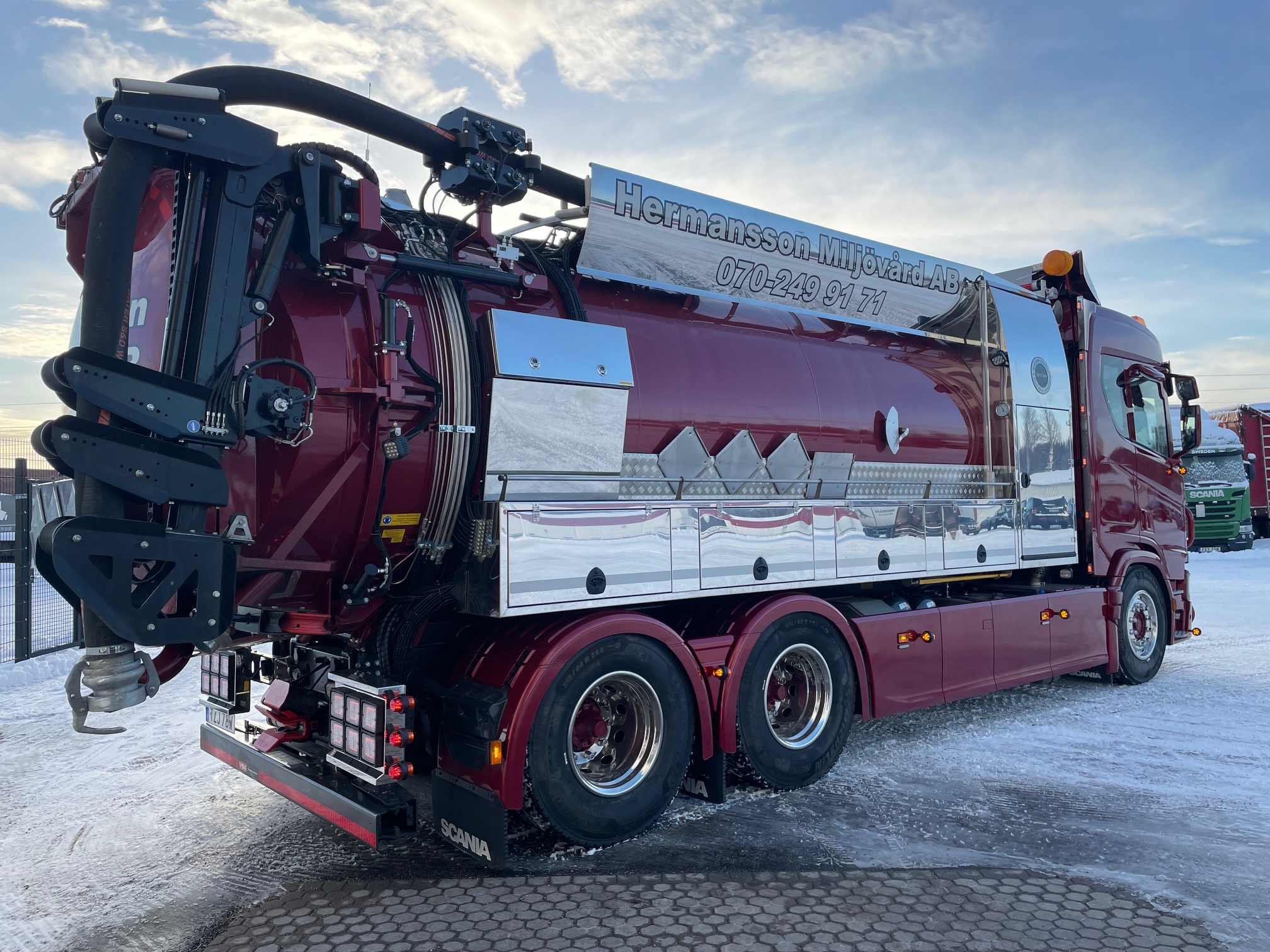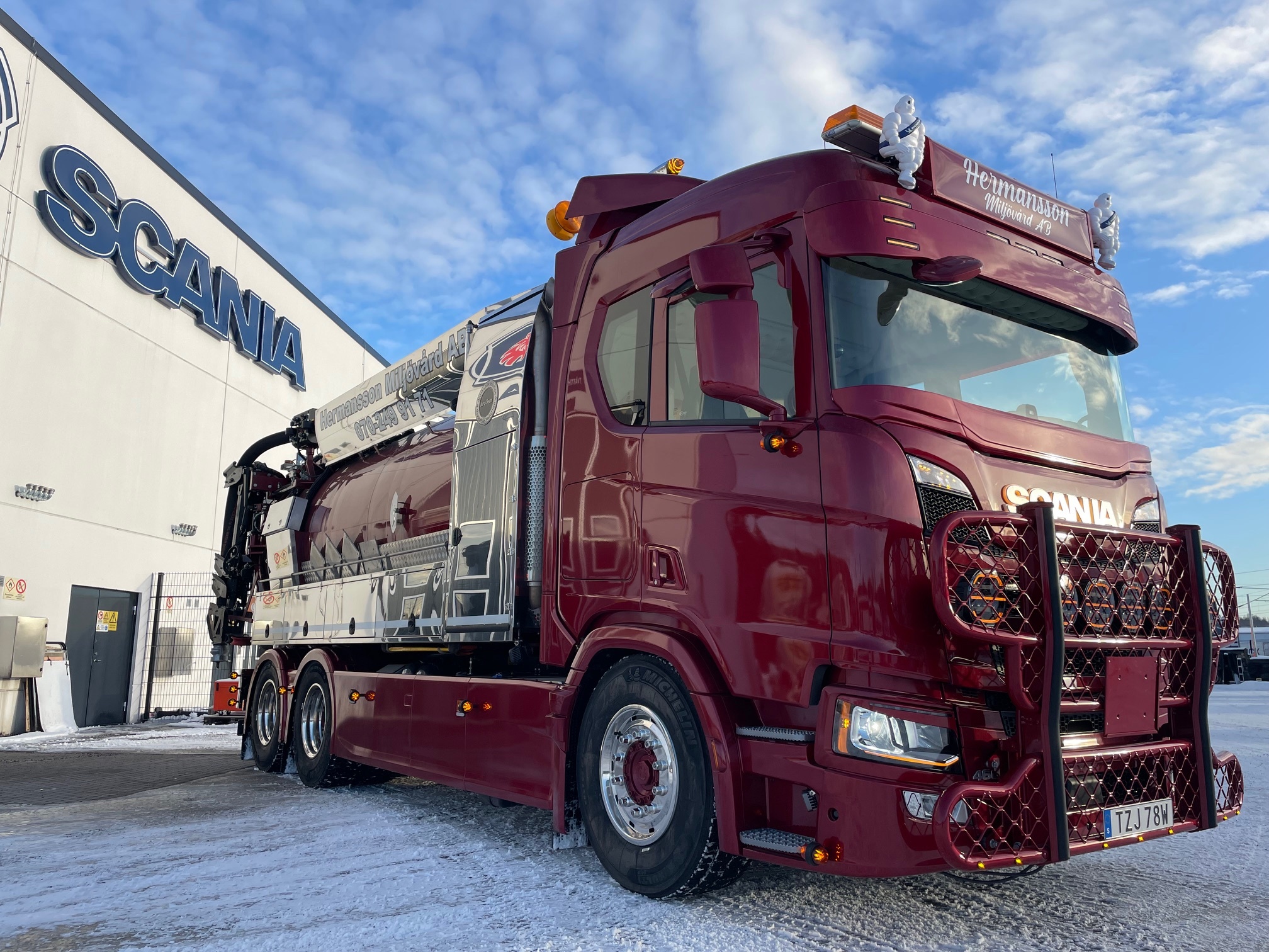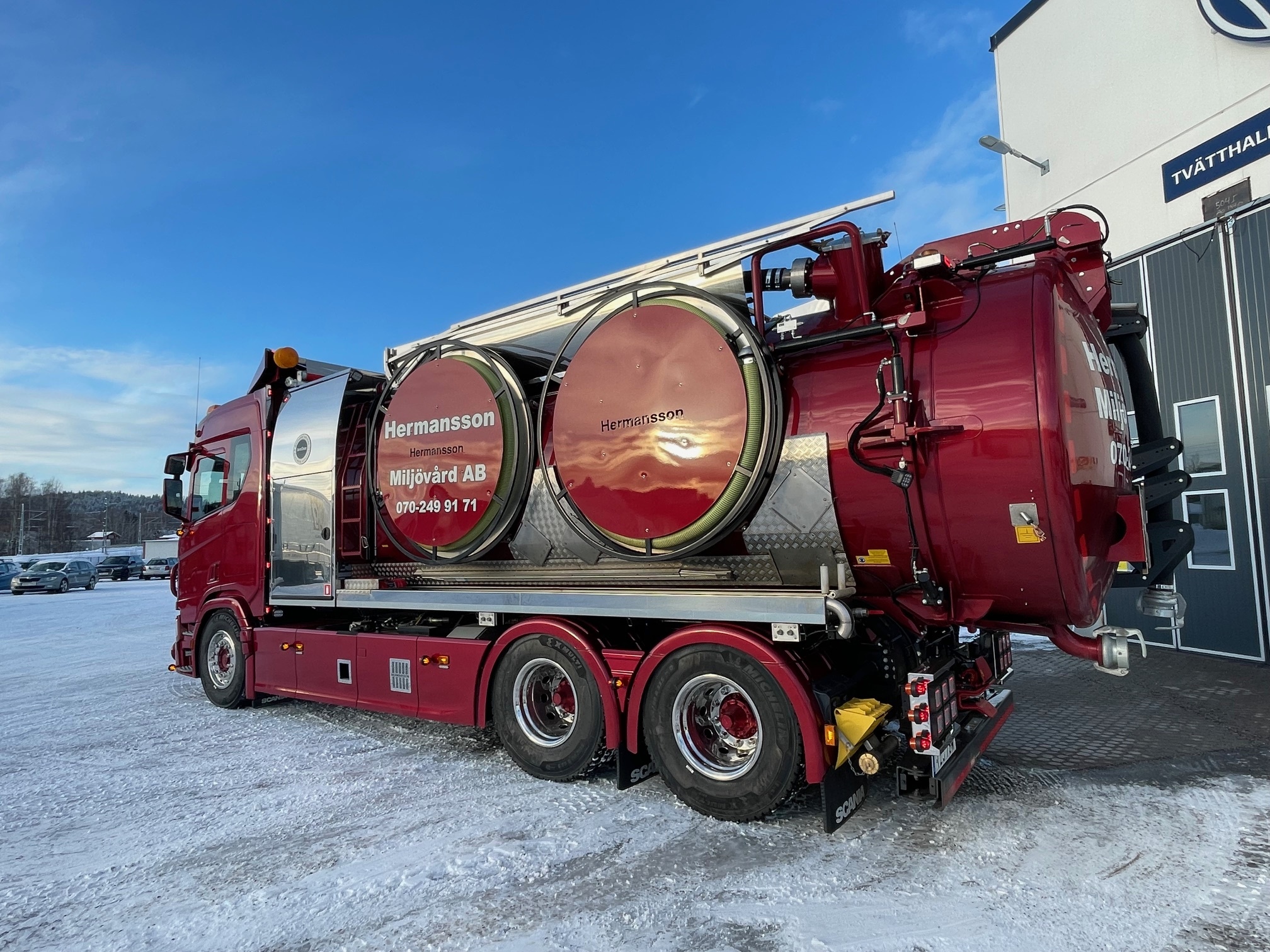 Micke och Alex har investerat i en ny Scania R460 6x4 med påbyggnation från Juro Clean Finland. Berners i Sundsvall har utrustat bilen enligt kundens önskemål. Vi önskar lycka till med den nya, snygga bilen och kör försiktigt på vägarna.