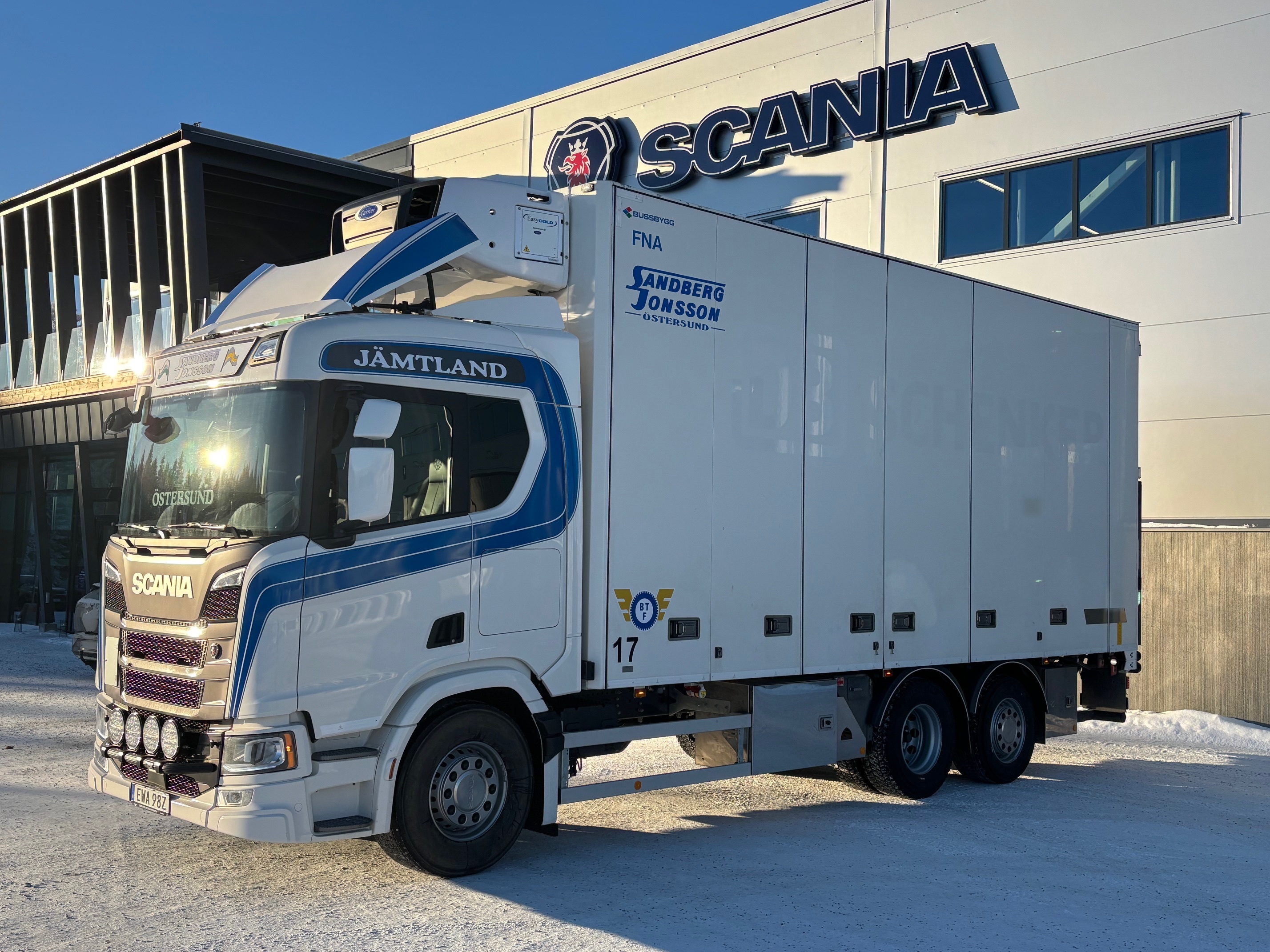 Sandberg & Jonsson Åkeri i Östersund har uppdaterat fordonsflottan med en ny R500 6x2*4 Super. Överflytt av skåpet och montering av Carrier aggregat är utfört på kundens egna verkstad, Fagerbacken Service. Just denna bil kommer främst att trafikera vägarna mellan Östersund och Stockholm. Vi på Berners tackar Jan och gänget på Sandberg & Jonsson för fortsatt förtroende och önskar superstort lycka till med nya bilen.
