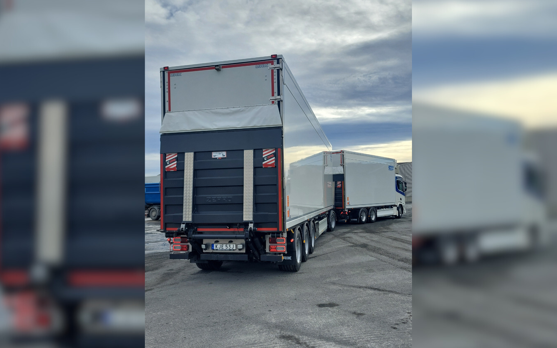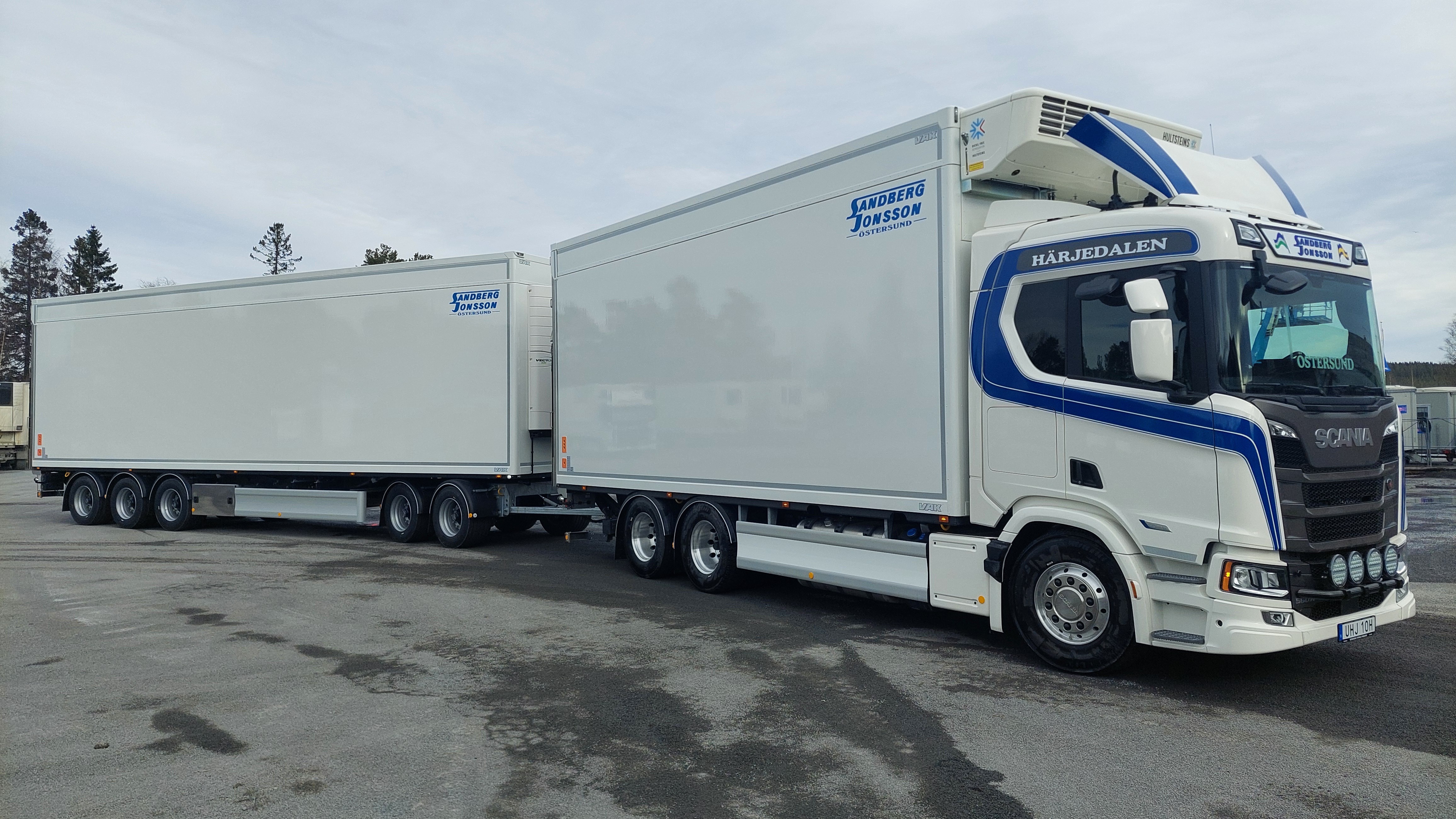 Leverans av nytt stilrent ekipage till Sandberg & Jonsson Åkeri i Östersund. Denna bränslesnåla och starka R560 6x2 Super ger både ekonomi och trygghet på kuperade vägar. Dubbelplansbyggnationer på både bil och släp från VAK Oy i Finland skapar stor effektivitet och god arbetsmiljö. ”Ergo gate” underlättar vid lastning och lossning när man slipper öppning och stängning av bakdörrar. Detta snygga ekipage kommer att försörja livsmedelsbutikerna i Jämtland med varor och främst trafikera vägarna mellan Östersund och Borlänge. Vi på Berners tackar Jan och gänget på Sandberg & Jonsson för fortsatt förtroende och önskar superstort lycka till med nya ekipaget, kör försiktigt.