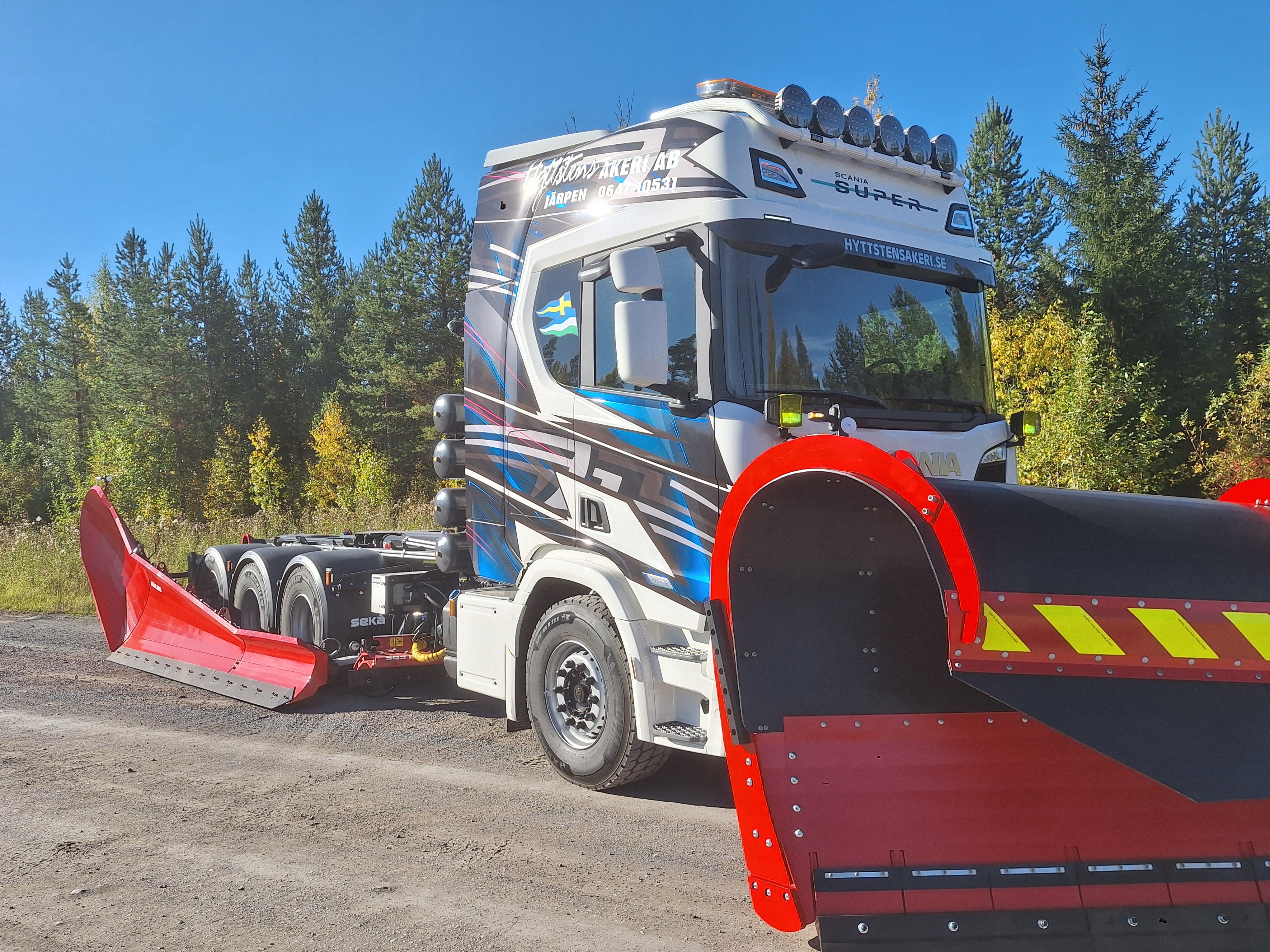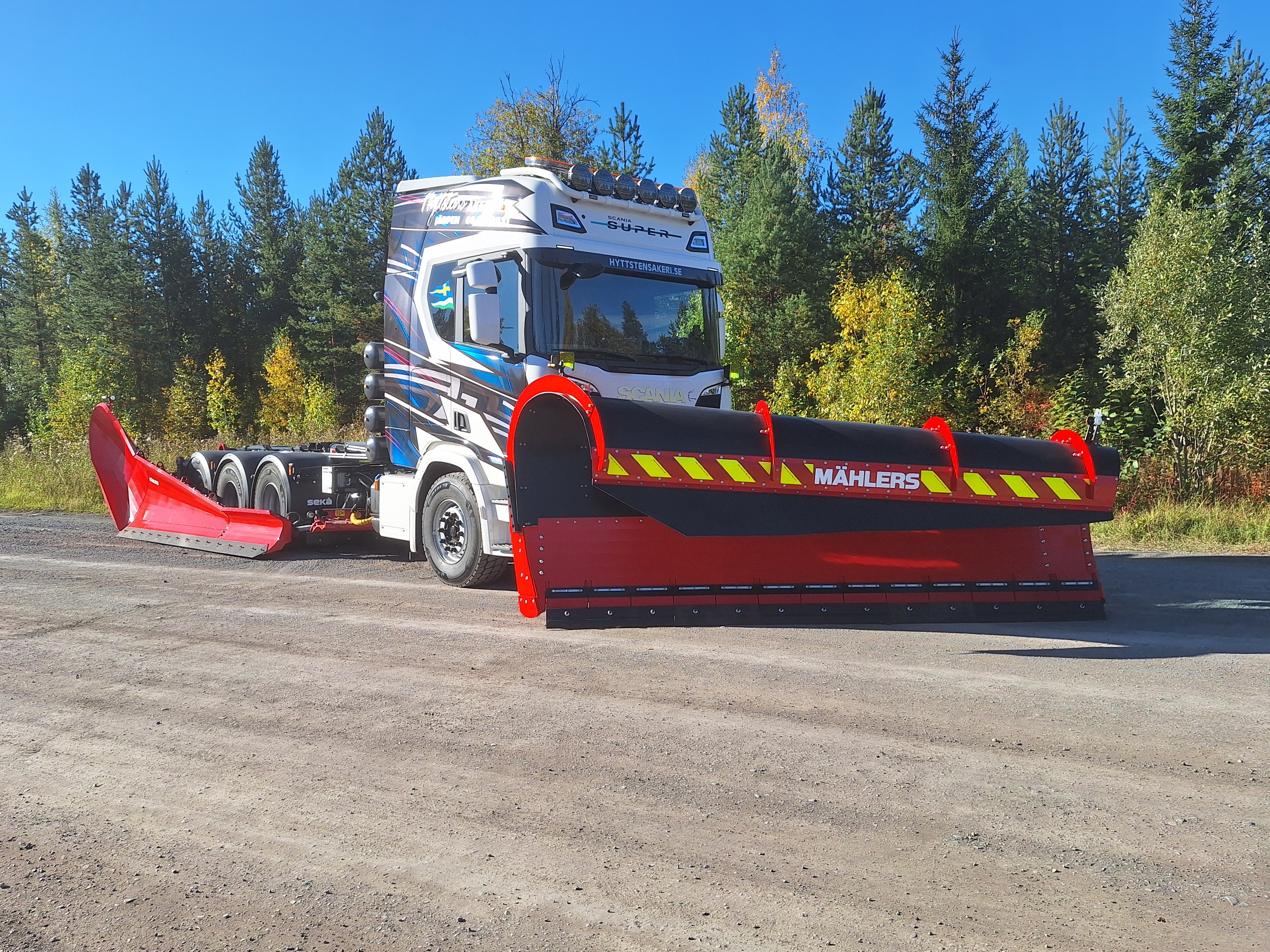 Hyttstens Åkeri i Järpen gör sig redo för vintern och investerar i en ny Scania R560 8X4*4 fullt plogutrustad med både vridbart underbett och nya plogar från Mählers. Påbyggnationen har SEKÅ i Skellefteå gjort och dekoren kommer från Lucendi AB. Vi tackar Johan och Susanne för fortsatt förtroende och lycka till med nya bilen.