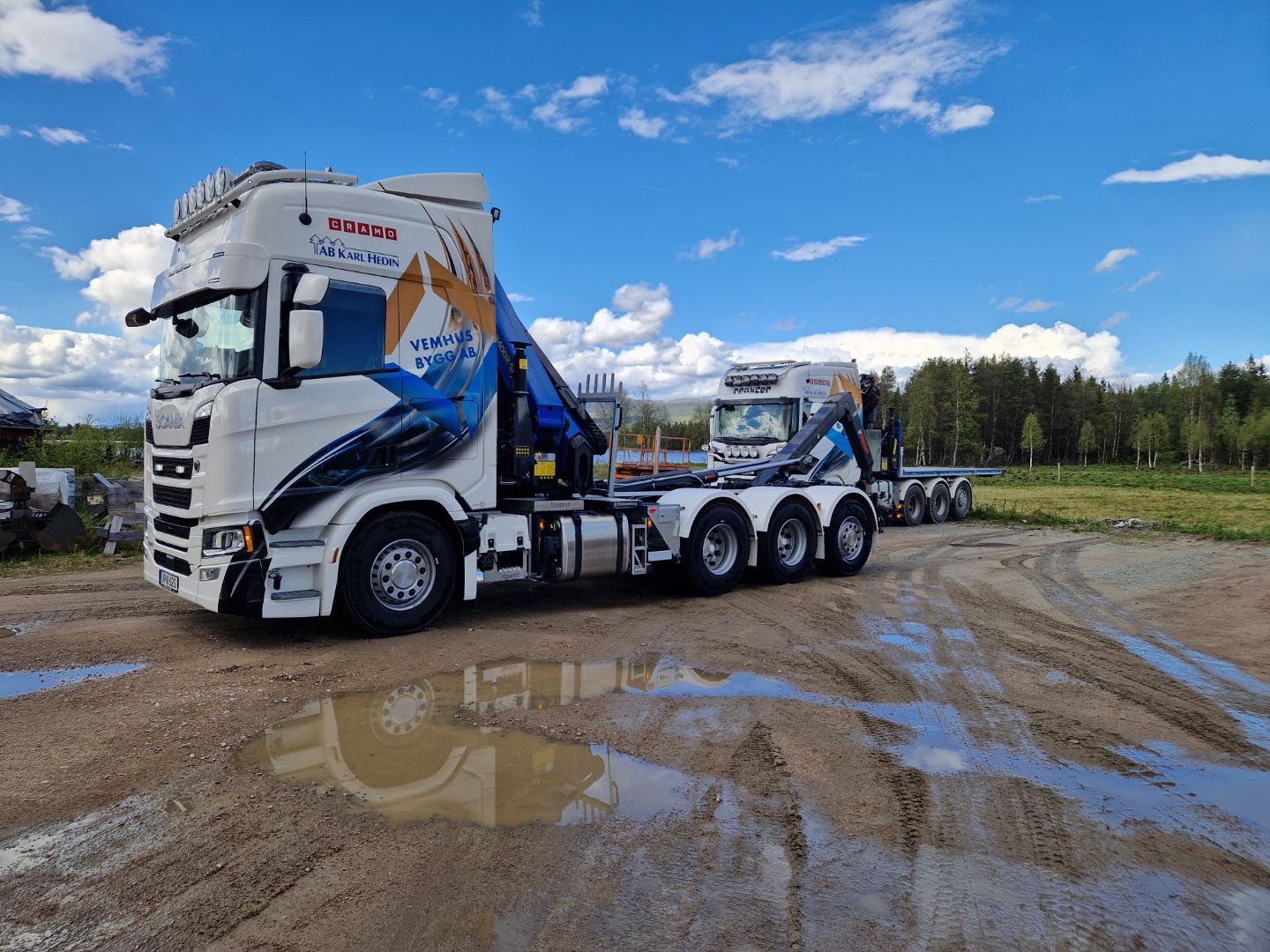 Vemhus Bygg AB satsar på ny kran/växlare. Den här gången föll valet på en Scania R560 8x4*4, en kraftfull maskin som möter företagets höga krav. Påbyggnationen har utförts av Vemservice AB, medan vi på Berners förberedde fordonet med fjärrstart och andra kundspecifika önskemål. Dekalerna monterades snyggt av JEVS.SE i Sollefteå. Vi riktar ett stort tack till Per och Magnus för det fortsatta förtroendet att leverera denna fina bil – och önskar er många säkra mil framöver.