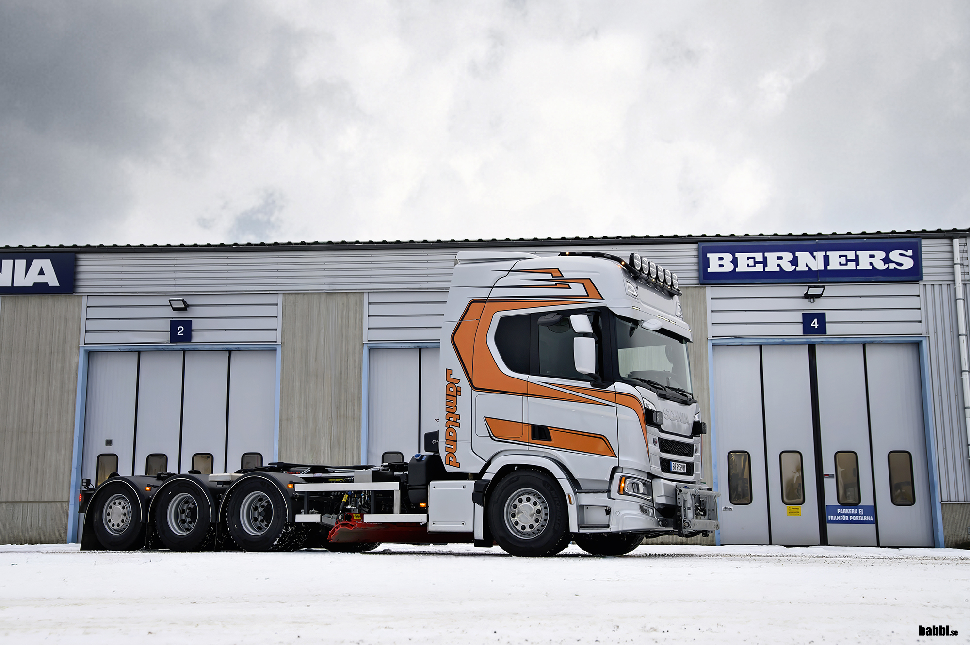 Bröderna Österlund Schakt & Entreprenad AB har uppdaterat vagnparken med denna Scania R560 8x4*4, fullt plogutrustad med Mählers system samt lastväxlare från Hiab. Berners Sollefteå har utrustad bilen efter kunds önskemål. Berners tackar ödmjukast för affären och önskar all lycka med nya bilen.