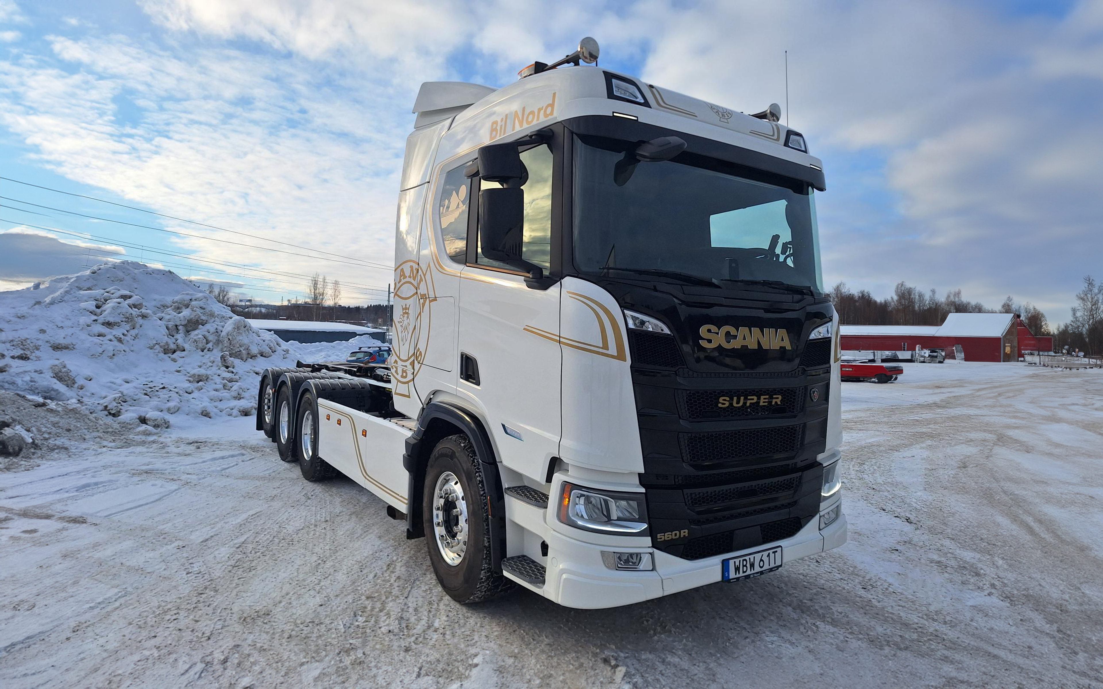 Vi har fått äran att leverera en Scania R560 8x4*4 till LWE Larrys Wilander Entreprenad AB. Bilen är påbyggd hos Bil Nords verkstad i Örnsköldsvik och utrustad med HIAB Ultima 24 och är välutrustad med bland annat Clutch on Demand, 10-tons framaxel, åtta backväxlar, elektrohydrauliskt styrsystem på framaxeln, flexibel lastöverföring, DuraBright-fälgar och mycket mer. Vi tackar för förtroendet och önskar lycka till på vägarna.