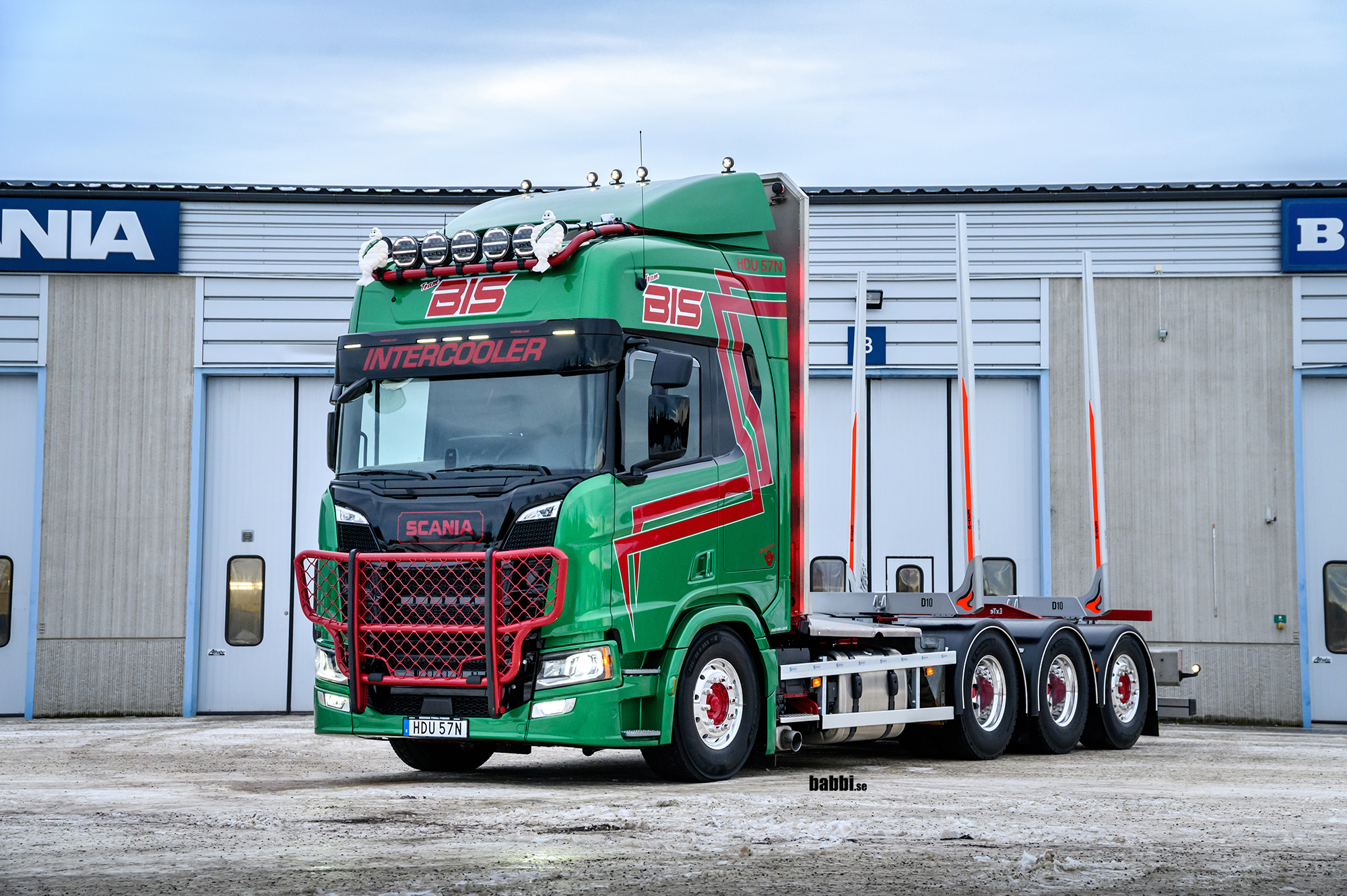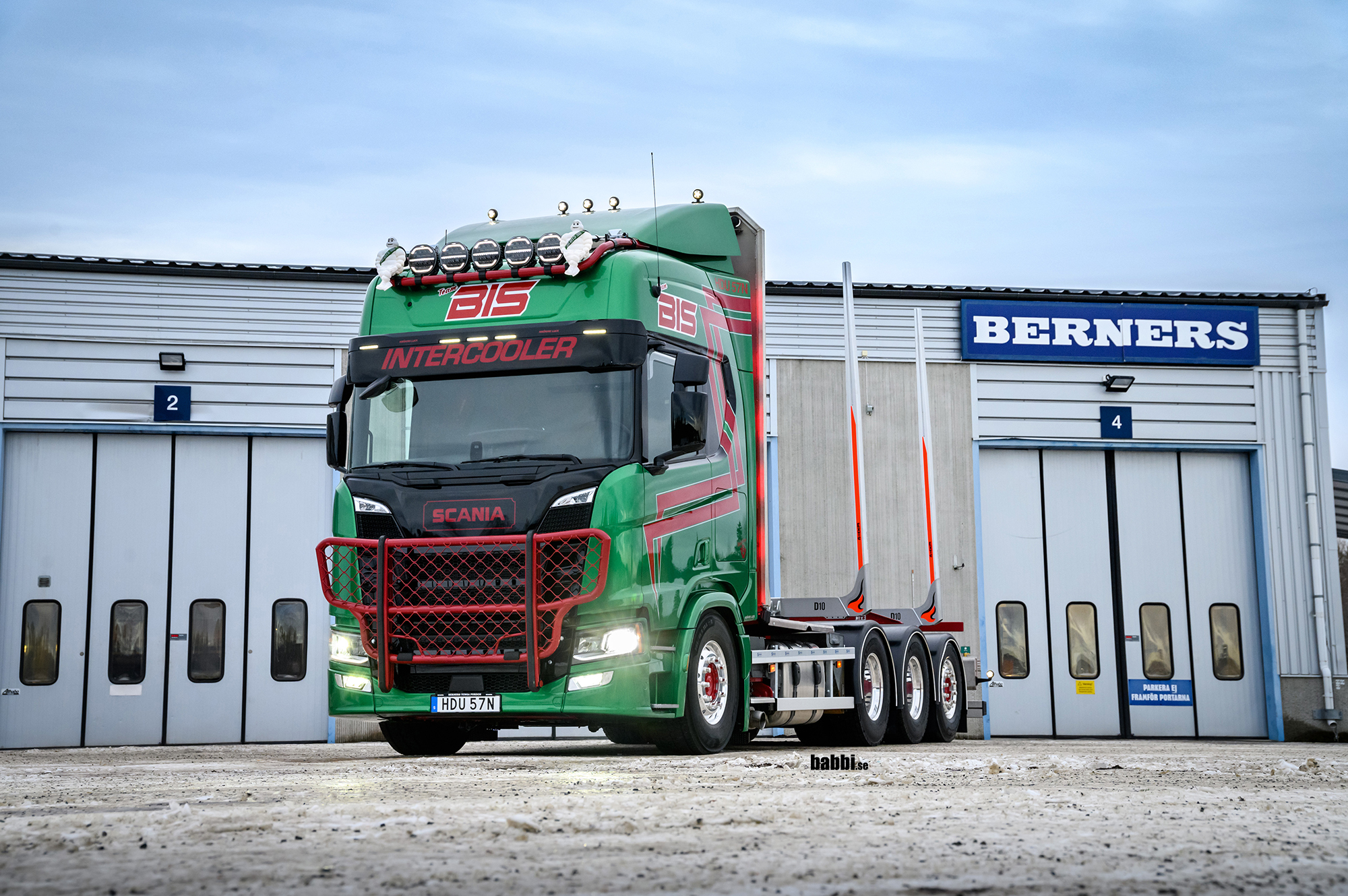 BIS Åkeri har investerat i en ny Scania R590 8x4*4 för sina timmerstransporter. Påbyggnation är utförd av Själanders Åkeri. Utrustning utförd på Berners verkstad i Sollefteå. Lackering utförd av Nyåkers lack. Berners Tunga Fordon AB i Sollefteå tackar för förtroendet och önskar all lycka med nya bilen.
