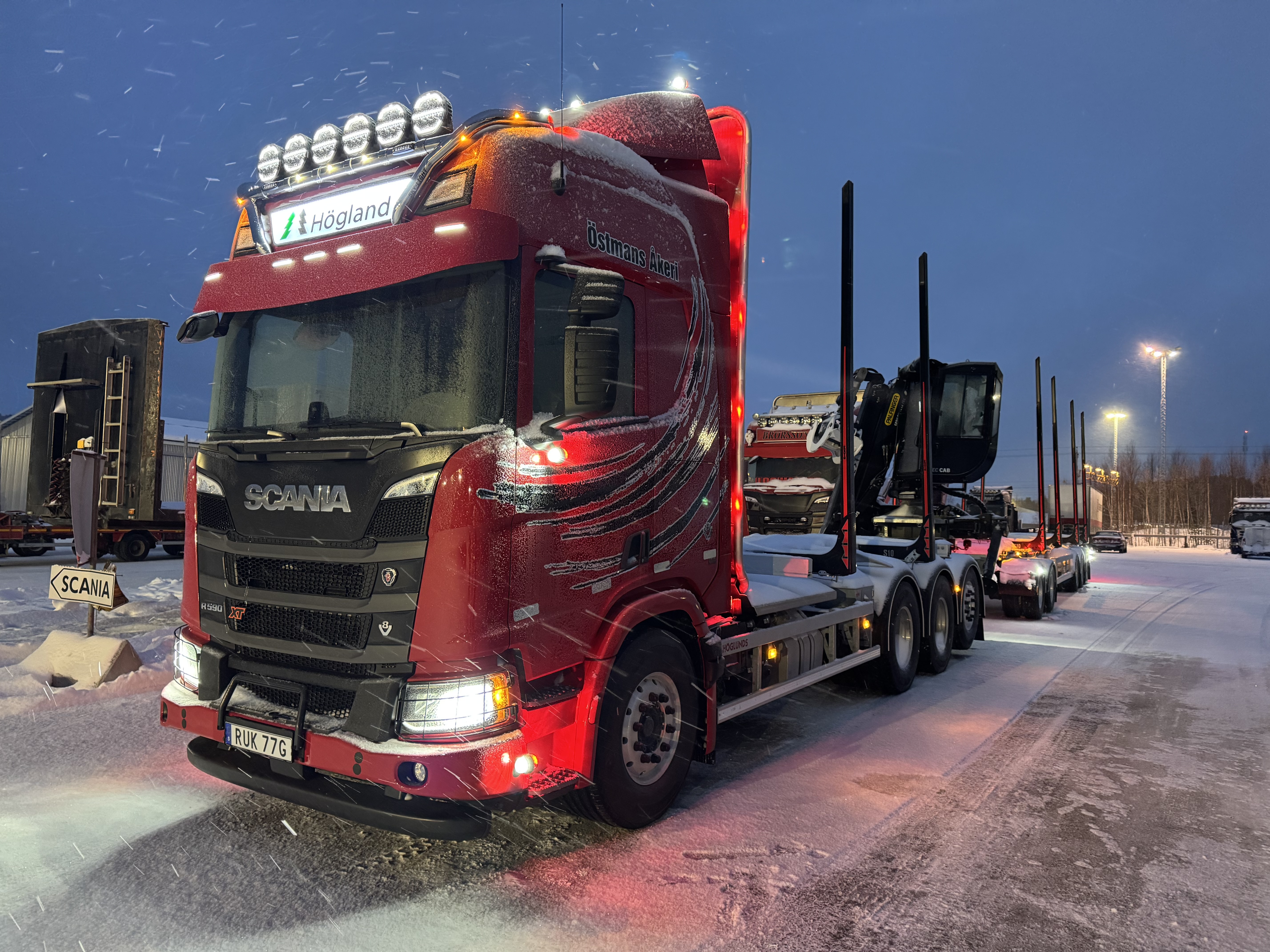 Vi har levererat ett komplett timmerekipage till JEH Östmans Åkeri. Bilen är en R590 8x4*4 i XT-utförande. Påbyggnaden är utförd av OP-Höglunds, medan övrig utrustning är monterad i Örnsköldsvik. Dekoren är framtagen av Haga Reklam. Kranen är en Epsilon TZ12, utrustad med Epscab och Tamtron ONE. Släpet är en AM-trailer från OP Höglunds och är bland annat utrustat med RoR-axlar och skivbromsar. Vi tackar för förtroendet och önskar lycka till på vägarna.