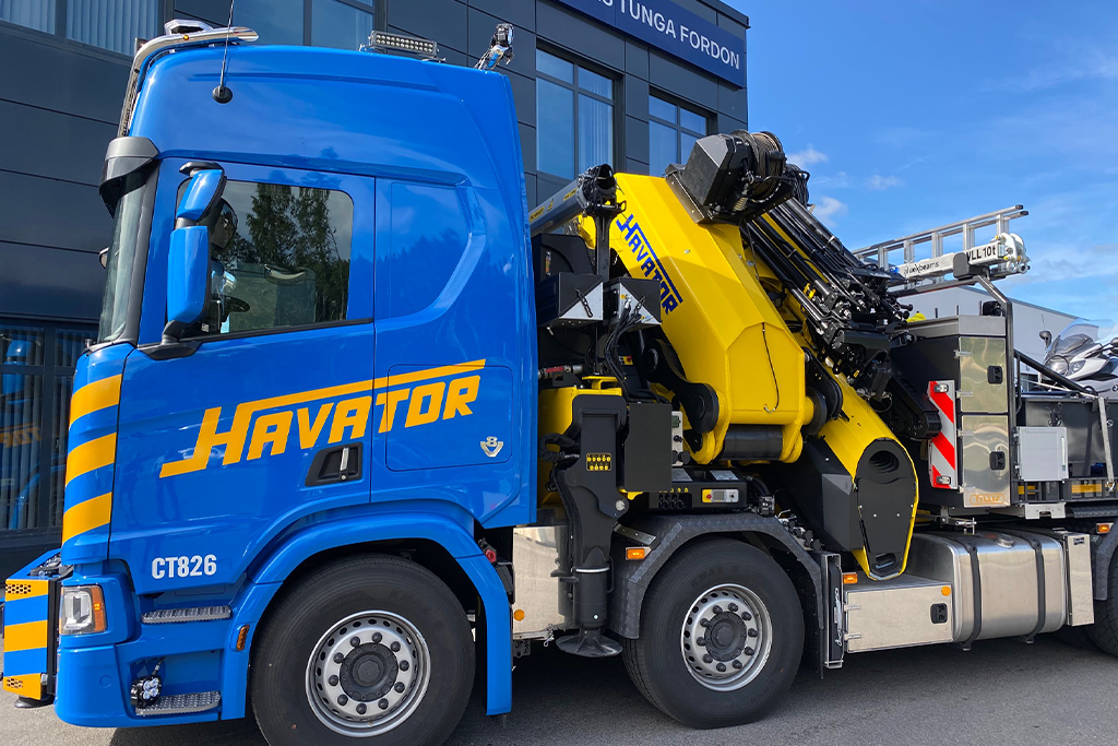 Havator har investerat i en ny Scania R590 8x4 kranbil. Tyllis Oy AB i Finland har gjort påbyggnationen med en ordentlig Palfinger 135-tons kran som räcker hela 32 meter och med jibb 37,5 meter. Bilen har löstagbart flak samt vändskiva för trailer. Berners Tunga Fordon i Sundsvall önskar grabbarna på Havator lycka till med den nya bilen.