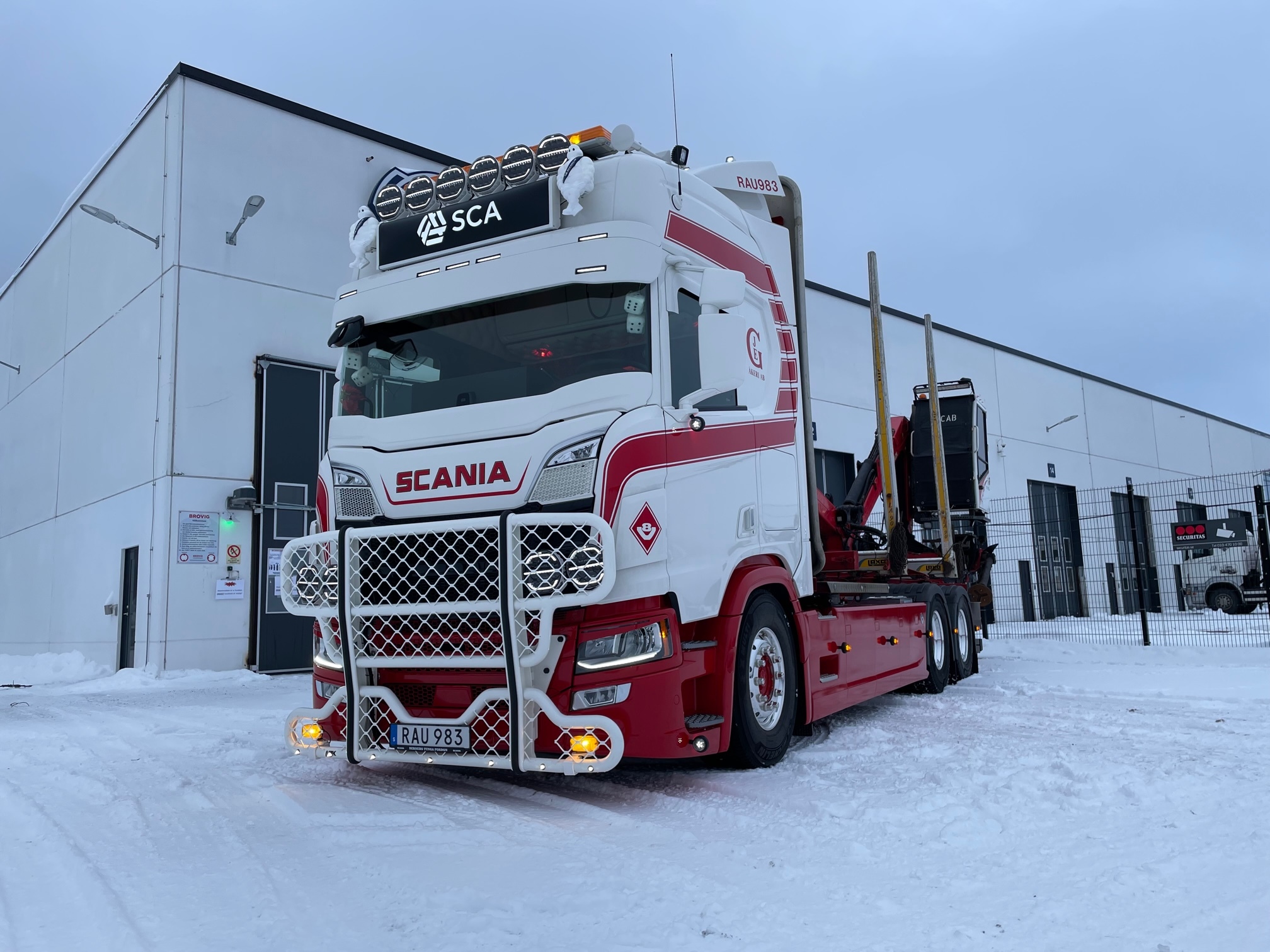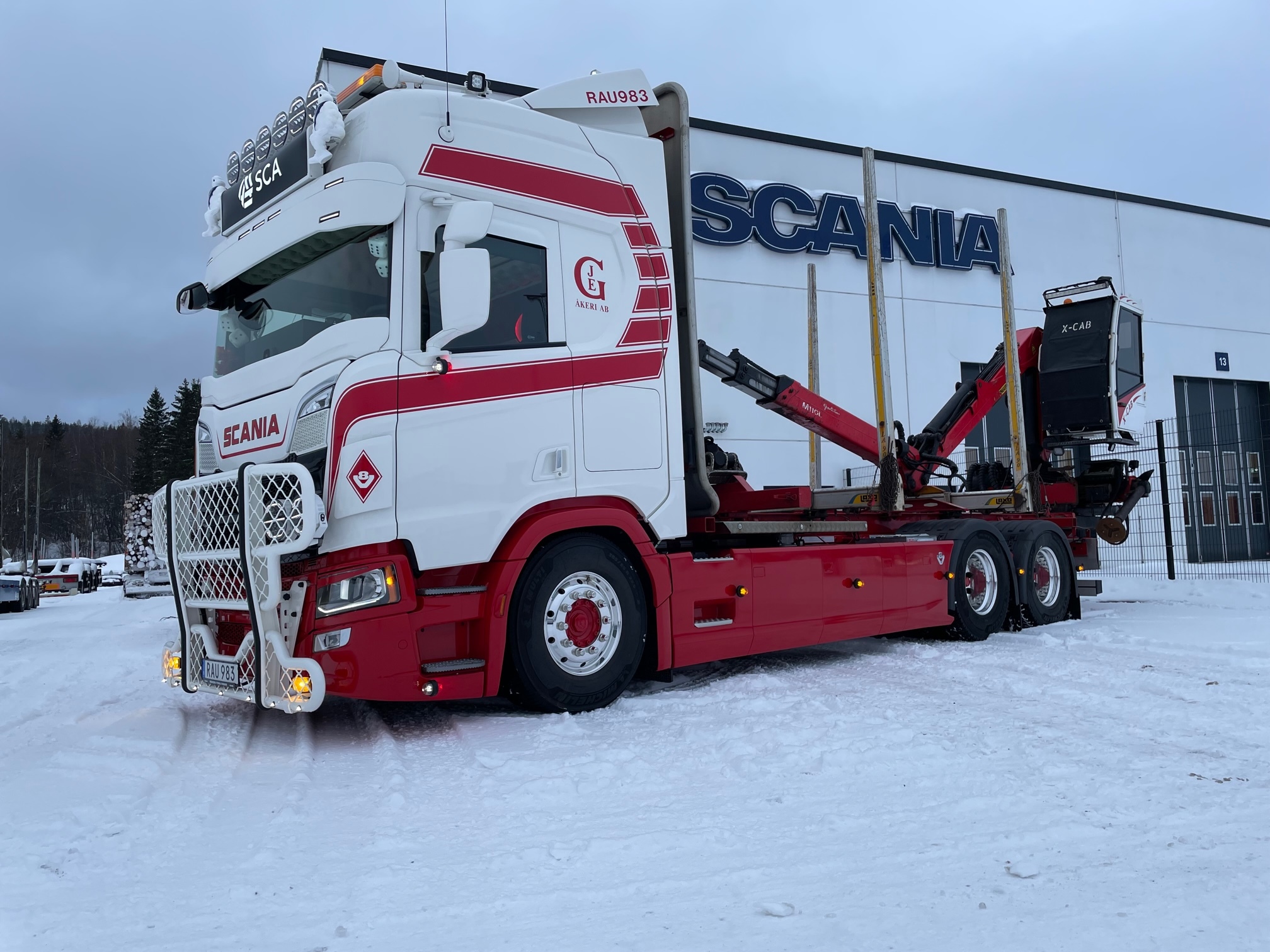 JEG åkeri har investerat i en ny Scania R660 6x4 snabblåsbil för sina uppdrag åt SCA. Verkstaden i Sundsvall har gjort påbyggnationen samt utrustat bilen enligt kundens egna önskemål med bland annat BRL ljudpaket, PG Tech takskylt och frontskydd ifrån MRK. Lackade detaljer ifrån Norbergs lack. Inredningen står Robert Nyman för. Berners Tunga Fordon i Sundsvall tackar för förtroendet att få bygga och leverera den fina bilen.