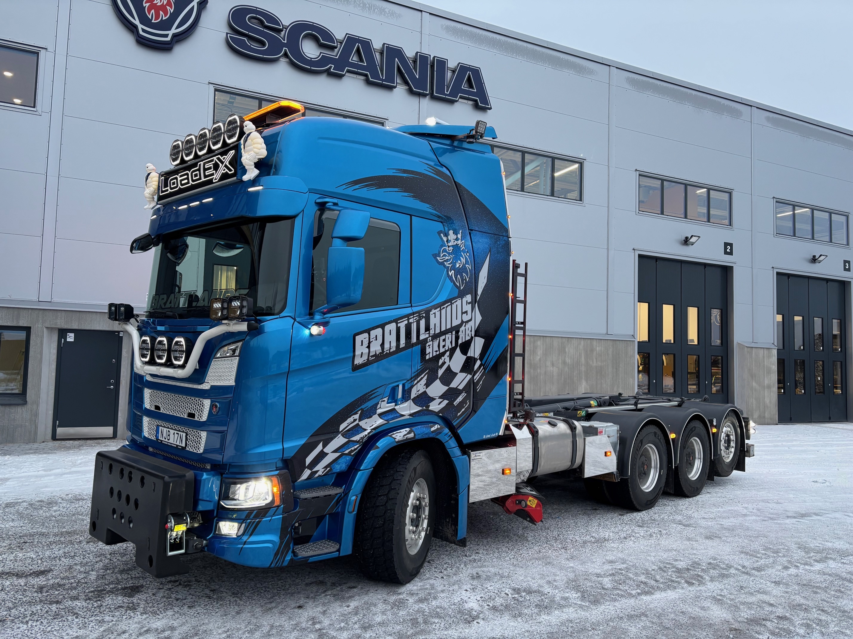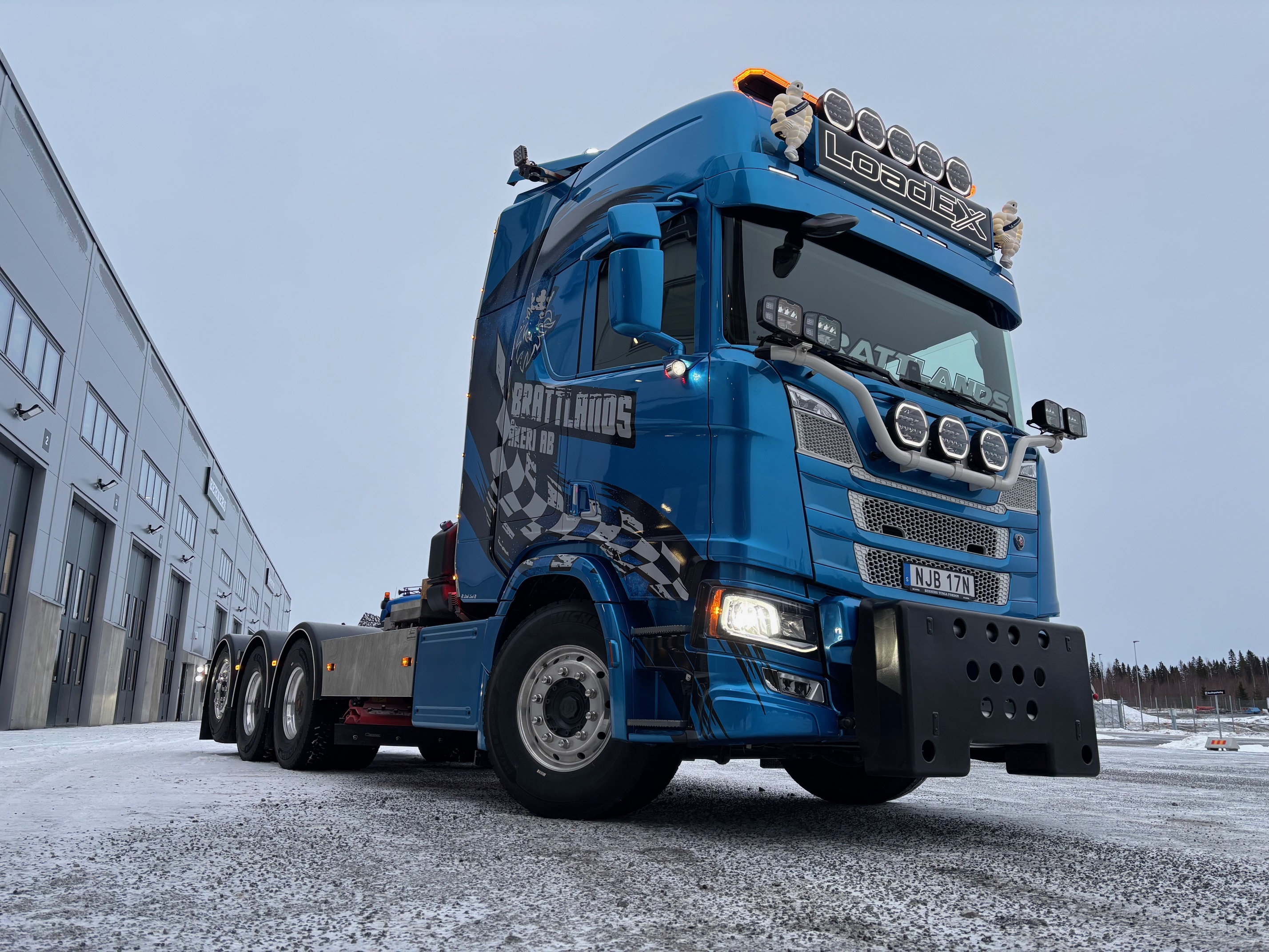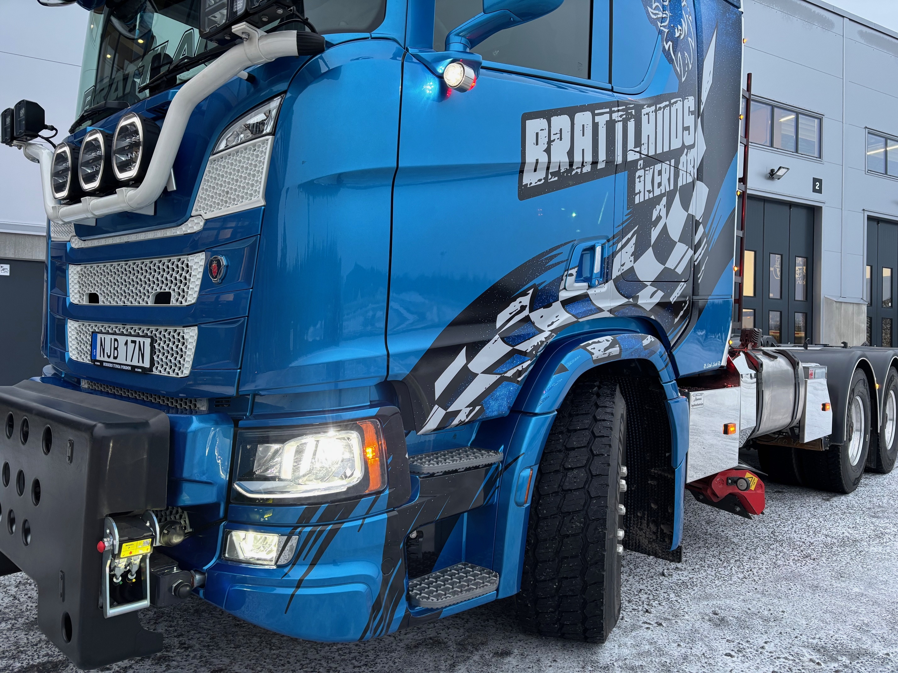 Första leveransen från vår nya anläggning i Verksmon gick till Brattlands Åkeri utanför Åre. De satsar vidare inför framtiden med en riktigt värsting, en R770 8x4*4. Bilen är påbyggd hos Åkarnas Hydraulservice i Hudiksvall med lastväxlare och plogutrustning inklusive underbett. Lack ifrån Litab och dekalering från Lucendi. Denna pärla kommer bland annat synas på vägarna kring Skalstugan där snön skall plogas. Vi på Berners tackar Kalle och Ratte för förtroendet och önskar stort lycka till med nya värsting V8:an. Kör försiktigt!
