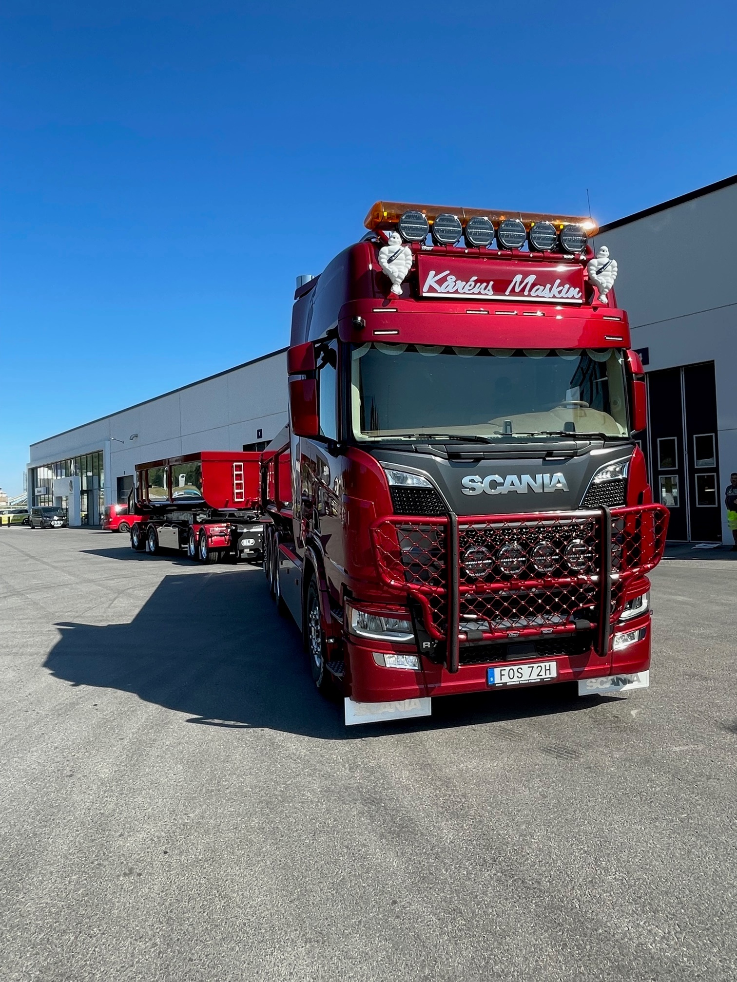 Björn har tagit ut ett nytt kraftpaket i form av en Scania R 770 8x4*4 med påbyggnation & släp ifrån SLP. Verkstan i Sundsvall har monterat extrautrustningen & Majlands inredningar har gjort den nya inredningen. Berners Tunga Fordon AB i Sundsvall tackar för förtroendet att få leverera det snygga ekipaget.