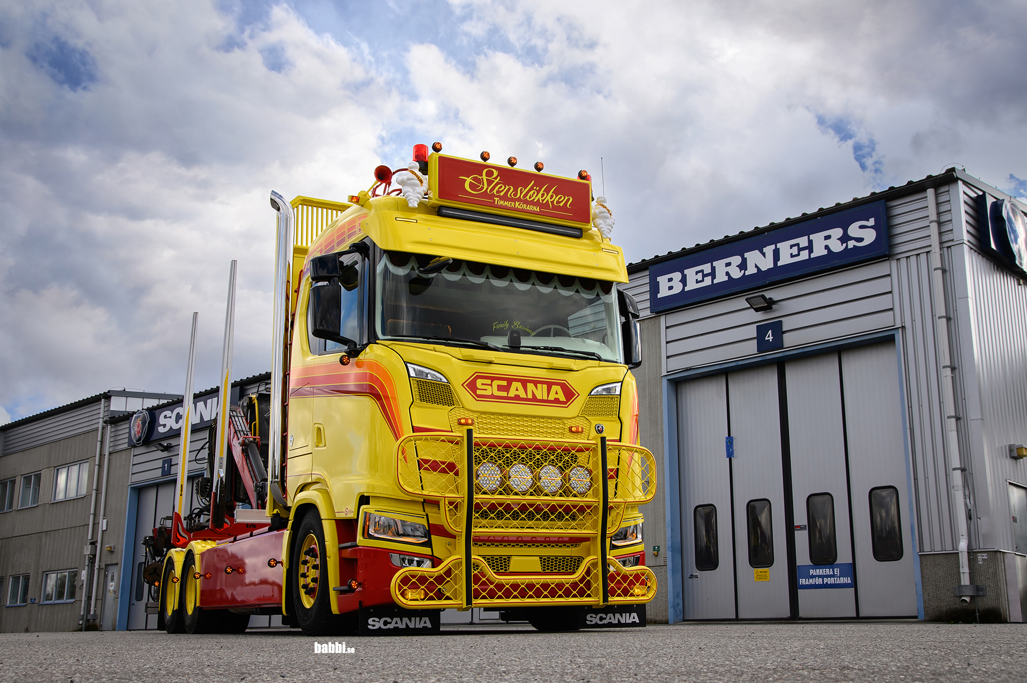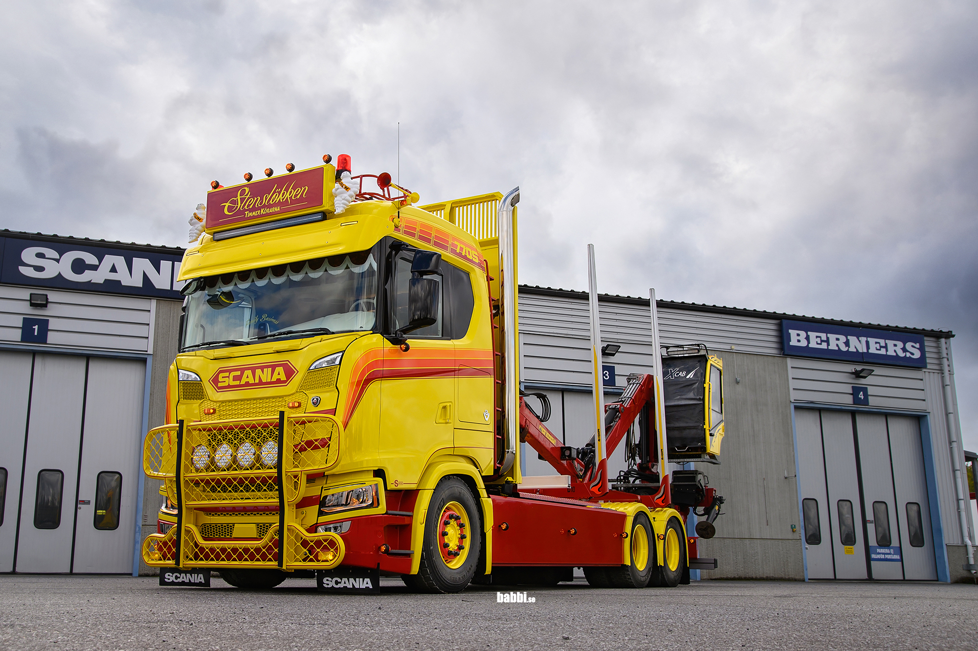 Stenslökken Åkeri har uppdaterat vagnparken med en ny Scania S770 6x4 timmer. Påbyggnation är utförd av Björnavagnar AB. Utrustning av bilen är utförd på Berners verkstad i Sollefteå. Den smakfulla inredning har designats och byggds av Tobis Stenslökken. Berners Tunga Fordon AB i Sollefteå tackar för förtroendet och önskar all lycka med nya bilen.